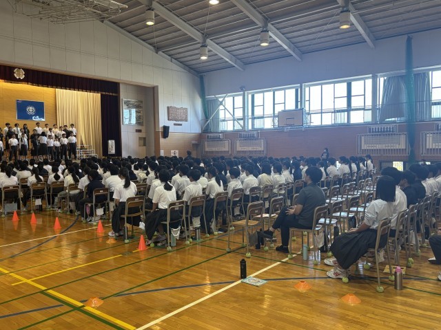 令和7年10月15日(水)合唱コンクール前、最後の練習が行われました。クラス全員で声と気持ちをひとつにして歌いきりました。いよいよ明日が本番です。最高のステージになることを確信しています!保護者の皆様、本番当日16日(木)は運動場を駐車場として開放しています。1年生は9時開始になりますので、時間に余裕をもって来校され駐車するようにお願いいたします。