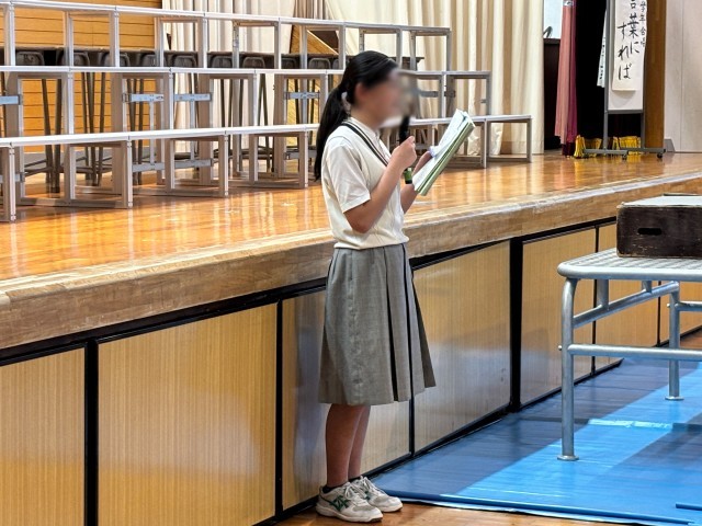 令和7年10月14日(火)5時間目 コンクール本番前最後のリハーサルでした。1、2年生も入場し、3年生の合唱を聴きました。各クラスが合唱曲を披露することを通していく中でどんどん引き込まれていきました。いよいよ明後日が本番です。さらに磨きをかけ、素晴らしい合唱になることを期待しています。