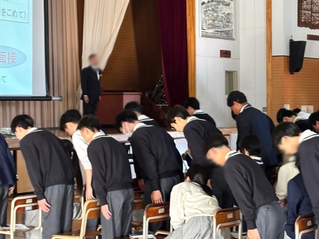 令和7年11月11日(火)午後から高校の先生をお招きし、受験における面接のポイントを教えていただきました。高校受験に限らず、面接で好印象を得るコツは人生のいたるところで有用です。面接の際には、生徒の皆さんの爽やかさを最大限生かしてください。