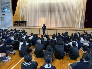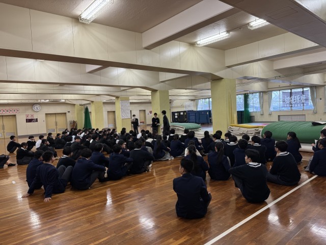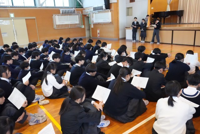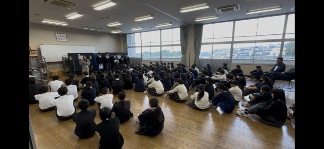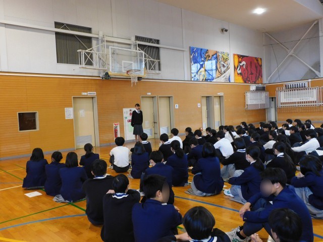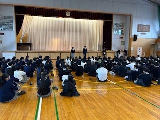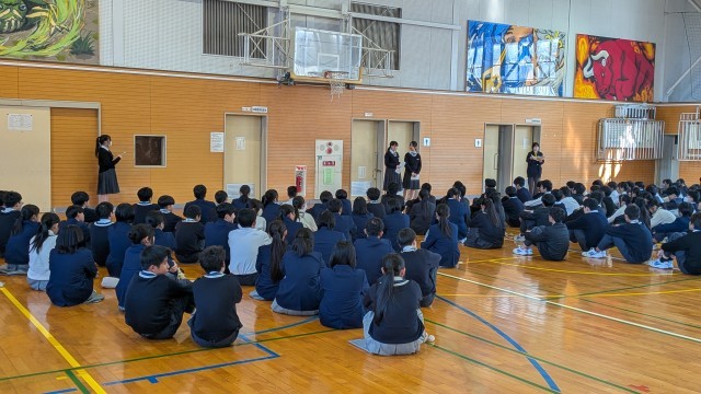 令和7年11月18日(火)6時間目地区別生徒集会がありました。代表生徒からは第3回コミュニティ活動推進委員会での内容の報告、代表の先生からは地域貢献活動への参加率、参加する意味について話があり、地域貢献活動の重要性について再確認することができました。