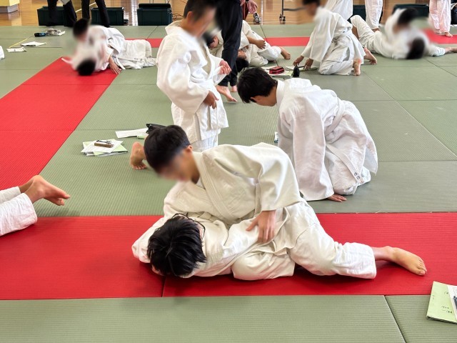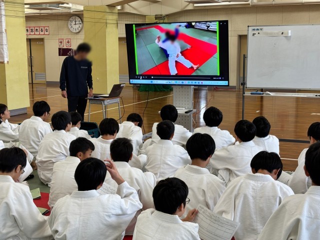 令和7年11月28日(金) 4時間目に保健体育科「柔道」の研究授業が行われました。参観者が多く、授業者も生徒も緊張する場面で、堂々と授業を行っていました。生徒のみなさんも真剣な表情で「けさ固めマスター」をめざし、よりよい方法を考え、練習に励んでいました。