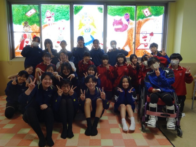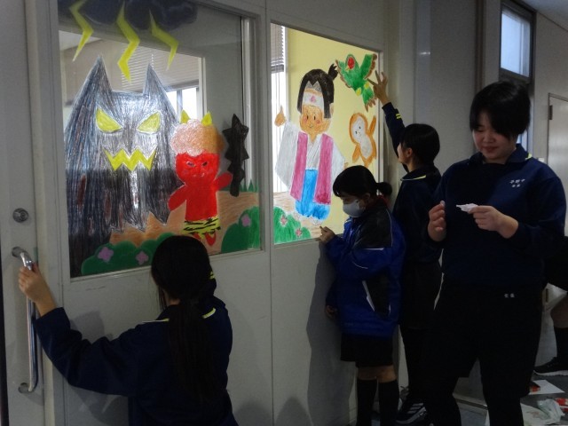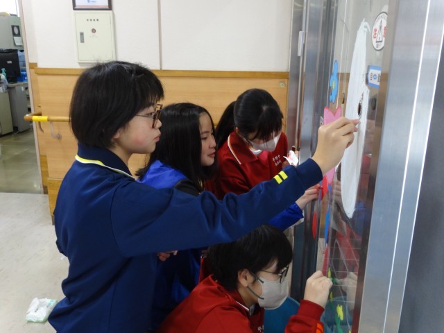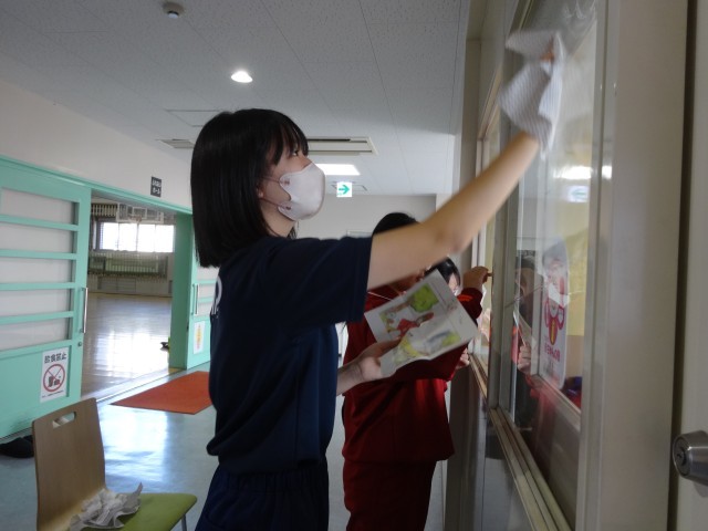 南コミュニティセンターの入り口ドア・キッズルームの窓に