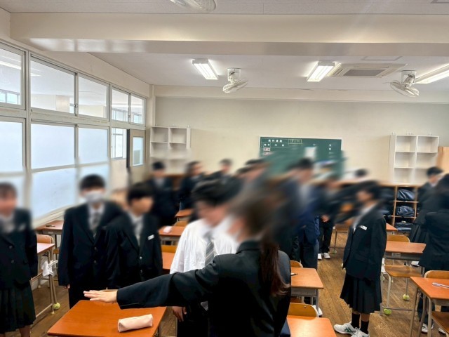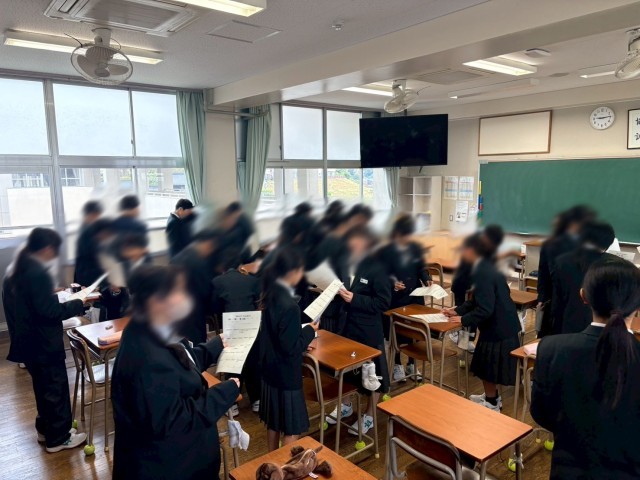 令和8年4月13日(月)1年生は、入学式や学力診断テストと忙しい日々が続いていましたが、休日をはさんでクラスの仲を深める時間を設けました。コミュニケーションビンゴでは、クラスメイトの意外な一面に驚くことも。これからますます仲を深めてくださいね。