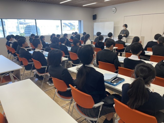 令和7年11月25日(火)6時間目に少年サポートセンターの方にお越しいただき、講話をしていただきました。SNSを使用する中で起こりうるトラブルへの向き合い方や周囲との関わり方について、具体的な事例を交えながら分かりやすくお話しくださいました。生徒のみなさんは、自分の行動を振り返りながら真剣に耳を傾けていました。今回の学びを今後の生活に生かしてほしいと思います。
