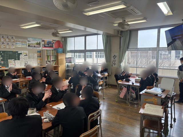令和8年1月13日(火)6時間目に学年集会を行いました。3学期の過ごし方について、先生からは学習面・生活面、生徒会からは学校生活について話がありました。3学期のスタート(2年生に向けて)にあたり、気持ちを新たにしました。