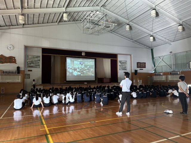 令和7年6月24日(火)本日、修学旅行に向けて実行委員からスローガン「全心前進~一人一人がリーダーとして自主的に動き、団結できる学年~」の発表がありました。スローガンを達成できるために生徒達は頑張っています。