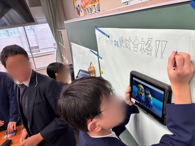 令和8年1月20日(火)クラス掲示用に受験を控えた級友への応援メッセージを書きました。自分の好きな言葉やイラストをかき、仲間を励ます姿は印象的です。受験までもう少し、全員がんばれ!