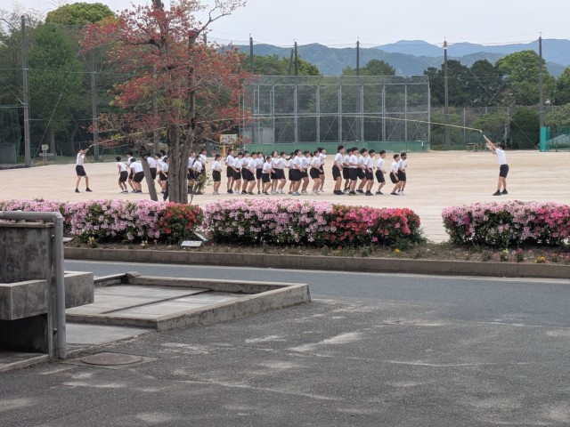 さて、私が「検食」を行っていると、グラウンドから元気な声が聞こえてきました。いよいよ体育祭の練習が始まりました。3枚目の写真は大縄飛びの練習の様子です。放課後は、各教室等で「体育祭一斉リーダー&係会」が行われていました(写真4枚目)。体育祭結団式は来週の火曜日です。