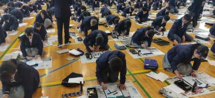 皆さん思い思いの今年の一字を上手に、習字で書いていました。 -