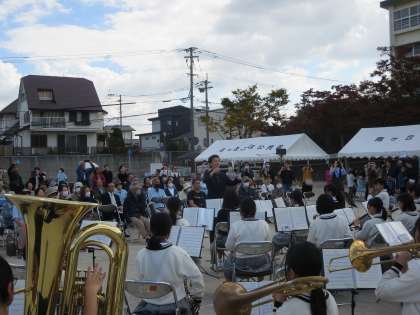 秋晴れの空のもと,参列された地域の方に『YOASOBI』のアイドルをはじめ,3曲を演奏しました。区長さんをはじめ,式典関係者の方々より感謝のことばをいただきました。