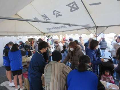 12月11日(日)に平野台地区で「もちつき大会」が開催されました。早朝9時30分よりボランティアとして17名の生徒が参加しました。