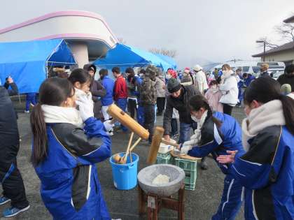 会場設営やお餅をつく係として活躍しました。地域の方より「積極的に取り組むことができていて素晴らしいです」とお褒めのことばをいただきました。