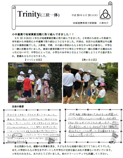 「野球部」第19回筑紫区中学校野球駅伝大会:駅伝の部3位,2年マラソンの部3位,第77回サンサン杯軟式野球大会:優勝,第20回四王寺杯中学校親善軟式野球大会:優勝