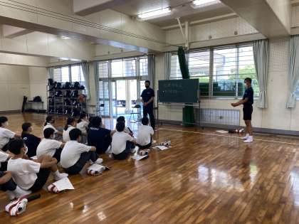 本日昼休みに、臨時の部長会が開かれました。内容は、部活動中の熱中症対策についての説明と健康観察の仕方についてでした。新型コロナウィルス感染症対策のためにマスクの着用をしなければならない中で、気温の上昇に伴う熱中症対策も行わなければならないため、細やかな配慮が必要であることを確認しました。活動前後の健康観察についても確実に行い、部員全体で周知するように説明がありました。