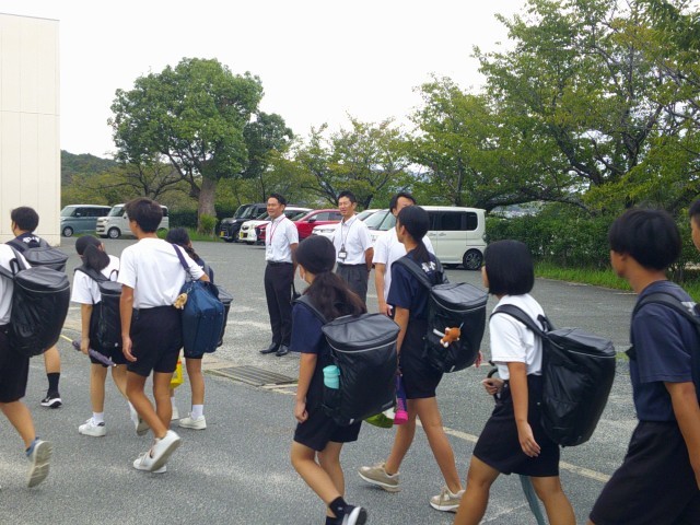 あいさつ運動を行いました。小学校の先生が来校されました。