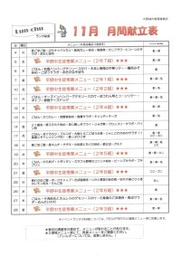 11月月間献立表を掲載していますのでご確認ください。注文は、注文方法に従って行ってください。なお、11月は平野中生徒考案メニューの日があります!※11月20日(木)2年生のランチ給食はありませ...