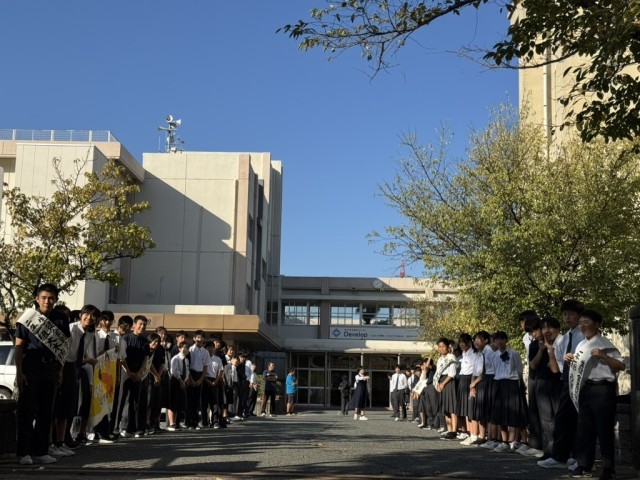 本日から第44代生徒会役員の選挙に向けての選挙運動が始まりました。朝早くから立候補者を応援すべくクラスの多くの生徒らが立候補者と一緒に挨拶運動を行いました。これからも熱い選挙運動が続きそうです。