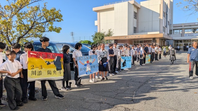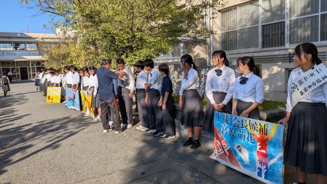 朝は8:00~8:15の間に、校門で「●●に一票をお願いします!」と立候補者と学級の仲間たちが大きな声で呼びかけえいます。