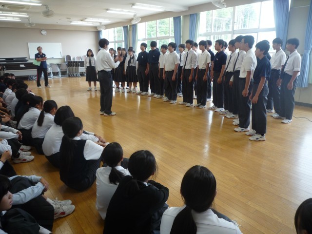 2年1組は、1年1組と一緒にお互いに合唱を披露しあっていました。1年生にとっては、上級生の合唱を目の当たりにすることで、まだまだ自分たちの足りない部分に多く気づいて危機感をもったようでした。2年生にとっても下級生の前で披露するのは緊張したことと思いますが、よい経験になったことと思います。