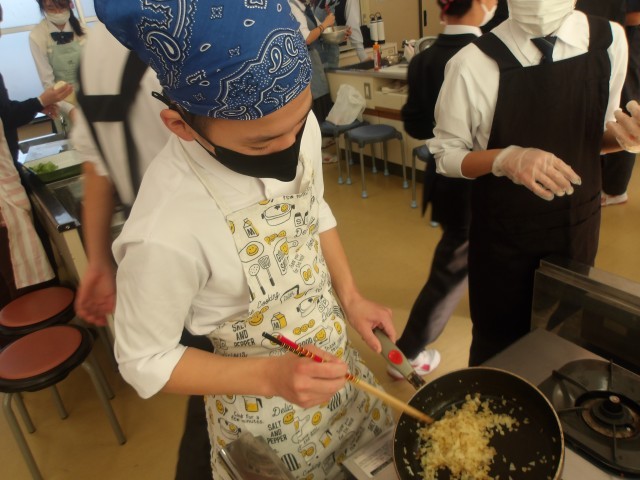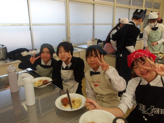 1年生が家庭科の授業で調理実習を行っています。本日のメニューは「ハンバーグとマカロニサラダ」です。班の中で役割を決め、互いに協力しながら調理実習に取り組む姿が見られました。食事の際には、「美味しい」「みんなと作れてよかった」といった達成感や感謝に満ち溢れており、調理実習を通してより一層クラスの絆が深まったように感じられました。月曜日に、最後のクラスの調理実習があります。Part2をお楽しみに!!