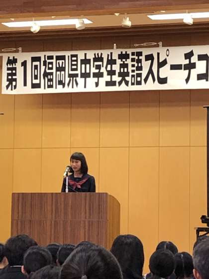 12月1日(土)に福岡県中学生英語スピーチコンテストが糸島市で開催され、御陵中学校からは2年生の吉田さんが大野城市の代表の一人として参加してきました。県下の代表が一堂に集まるコンテストでしたが、堂々と、練習の成果を出していました。